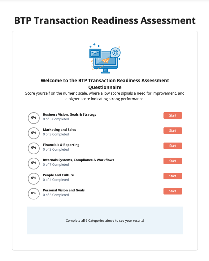 Take the Transaction Readiness Assessment to benchmark your business and identify opportunities to strengthen enterprise value.